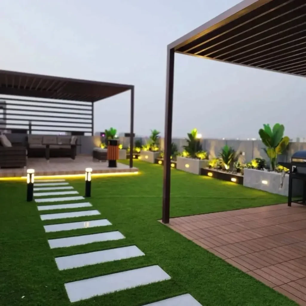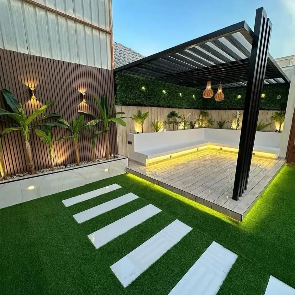 هنا يبرز دور أي شركة تنسيق حدائق بالرياض محترفة في كيفية جعل المساحة الضيقة تبدو واسعة ومنشرحة . يتم ذلك عبر تقسيم ذكي للمساحة، واستخدام عشب مناسب، مع دمج عشب جداري أو تعريشات خشبية، وتوزيع مظلات وسواتر مدروسة مع إضاءة ترفع الإحساس بالاتساع والرحابة